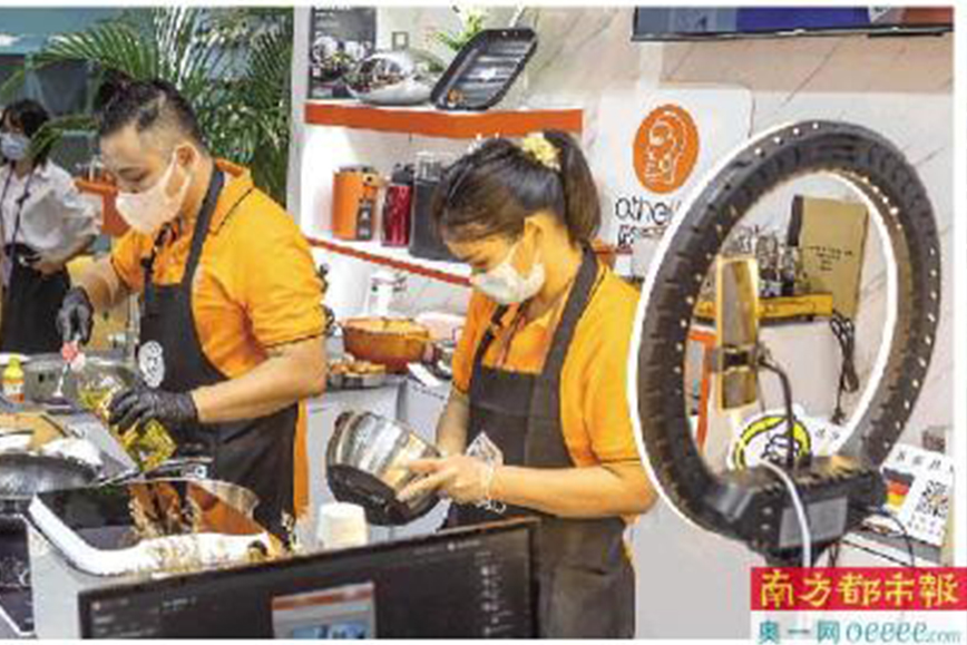 廚具參展商在展位現(xiàn)場(chǎng)直播用自家廚具做菜。 南都記者 譚慶駒 攝南都訊 為期5天的第130屆廣交會(huì)10月15日正式開始。首次“線上+線下”相結(jié)合的廣交會(huì)受到參展商和采購(gòu)商熱捧,現(xiàn)場(chǎng)人潮涌動(dòng),熱鬧非凡?!皬V交會(huì)仍然是我們十分依賴的一個(gè)平臺(tái)”,有參展商表示,雖然第一天的客流量與疫情之前相比略有差距,但已經(jīng)出乎預(yù)料。值得關(guān)注的是,此次參展的不僅有企業(yè),也有部分外貿(mào)轉(zhuǎn)型基地的多家企業(yè)“抱團(tuán)”參展,不僅推廣企…