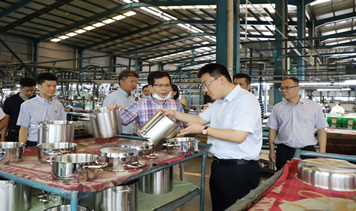 集團(tuán)訊 6月19日上午,廣東省廢鋼相關(guān)協(xié)會(huì)及企業(yè)調(diào)研組一行蒞臨我司調(diào)研,萬(wàn)事泰集團(tuán)行政部經(jīng)理陳永錦、廚具中心黃錦釗接待并陪同調(diào)研。調(diào)研中,調(diào)研小組參觀了萬(wàn)事泰生產(chǎn)車(chē)間的自動(dòng)化生產(chǎn)線(xiàn),詳細(xì)了解了萬(wàn)事泰自動(dòng)化生產(chǎn)情況,以及在廢鐵回收、加工上的工作規(guī)劃。調(diào)研組一行參觀自動(dòng)化生產(chǎn)線(xiàn)文/圖? 陳彩環(huán)