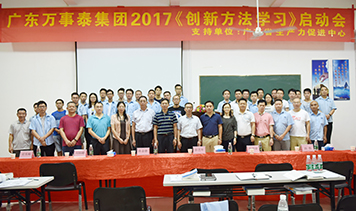 集團(tuán)訊 為提升企業(yè)一線科技人員創(chuàng)新思維和創(chuàng)新能力,促進(jìn)企業(yè)技術(shù)創(chuàng)新和科技成果轉(zhuǎn)化,進(jìn)一步擴(kuò)大創(chuàng)新方法推廣應(yīng)用范圍,以及提高企業(yè)整體研發(fā)速度,在廣東省生產(chǎn)力促進(jìn)中心鼎力支持下,萬(wàn)事泰集團(tuán)開(kāi)設(shè)了2017創(chuàng)新方法學(xué)習(xí)培訓(xùn)課堂。7月15日,廣東萬(wàn)事泰集團(tuán)2017創(chuàng)新方法學(xué)習(xí)啟動(dòng)會(huì)在萬(wàn)事泰總部食堂三樓培訓(xùn)室舉行。省生產(chǎn)力促進(jìn)中心主任陳金德、院長(zhǎng)梁雪梅、縣不銹鋼商會(huì)副會(huì)長(zhǎng)兼秘書長(zhǎng)彭藝年、研究院老師陳國(guó)榮、閩雁…