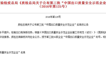 導(dǎo)讀:“中國出口質(zhì)量安全示范企業(yè)”是質(zhì)檢總局授予出口企業(yè)的質(zhì)量最高榮譽,代表著當(dāng)代和未來中國出口工業(yè)發(fā)展的實力和先進水平。入選示范企業(yè)作為質(zhì)量引領(lǐng)標(biāo)桿,可享受質(zhì)檢總局賦予的進出口貿(mào)易便利化政策,如出口法檢商品免予檢驗,出口法檢目錄外商品免予監(jiān)督抽查,進口法檢原材料和零部件憑質(zhì)量安全聲明或第三方檢測結(jié)果免予檢驗,優(yōu)先提供國外技術(shù)法規(guī)、標(biāo)準(zhǔn)、合格評定程序等信息和培訓(xùn),支持開展名牌創(chuàng)建活動等10項優(yōu)惠措…