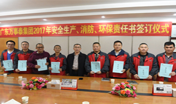 集團訊? 為了切實做好集團公司的消防、安全生產(chǎn)及環(huán)保工作。2017年3月1日上午10點半,廣東萬事泰集團2017年消防、安全生產(chǎn)及環(huán)保安全責(zé)任書簽訂儀式在總部辦公大樓一樓大會議室舉行。集團常務(wù)副總裁劉炳耀、事業(yè)一部總經(jīng)理鐘木營、事業(yè)三部總經(jīng)理蘇旭東、事業(yè)四部總經(jīng)理李耀、電器公司總經(jīng)理梁學(xué)仁、技術(shù)中心副總經(jīng)理胡志才、品質(zhì)中心經(jīng)理陳成武等共19人出席。儀式由行政部副經(jīng)理陳煥文主持,他向出席的…