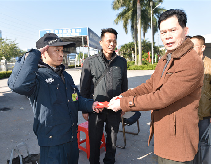 集團(tuán)訊 吉祥如意年初一,歡天喜地過猴年。2月8日上午,萬事泰集團(tuán)黨支部書記陳永錦、行政部副經(jīng)理陳煥文、總裁辦助理歐劍華一行,對新春佳節(jié)仍然堅守值班的集團(tuán)工作人員進(jìn)行春節(jié)慰問,他們代表集團(tuán)為值班人員帶去豐厚的新春禮物和慰問金,送上真摯的祝福和問候。陳永錦一行先后慰問了萬事泰總部值班人員、員工宿舍值班人員、事業(yè)二部值班人員、嘉事泰工業(yè)園區(qū)值班人員等集團(tuán)員工。在嘉事泰工業(yè)園區(qū)內(nèi),陳煥文勉勵值班員工要盡心…