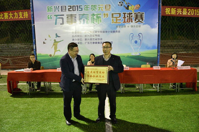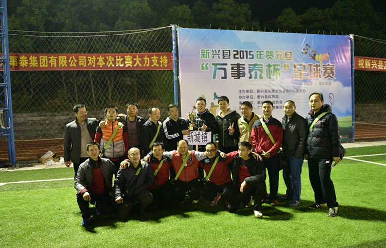2015年12月29日晚7時(shí),被稱為新興人自己的中超聯(lián)賽的“萬事泰杯”足球賽冠亞軍爭(zhēng)奪戰(zhàn)在新興理工學(xué)校拉開戰(zhàn)幕。決賽在兩個(gè)組別分別展開,最終六祖鎮(zhèn)和交通系統(tǒng)分別奪冠。球賽的唯一贊助方——廣東萬事泰集團(tuán)常務(wù)副總裁劉炳耀先生親臨現(xiàn)場(chǎng)為球員吶喊助威,并為獲勝球隊(duì)頒獎(jiǎng)。