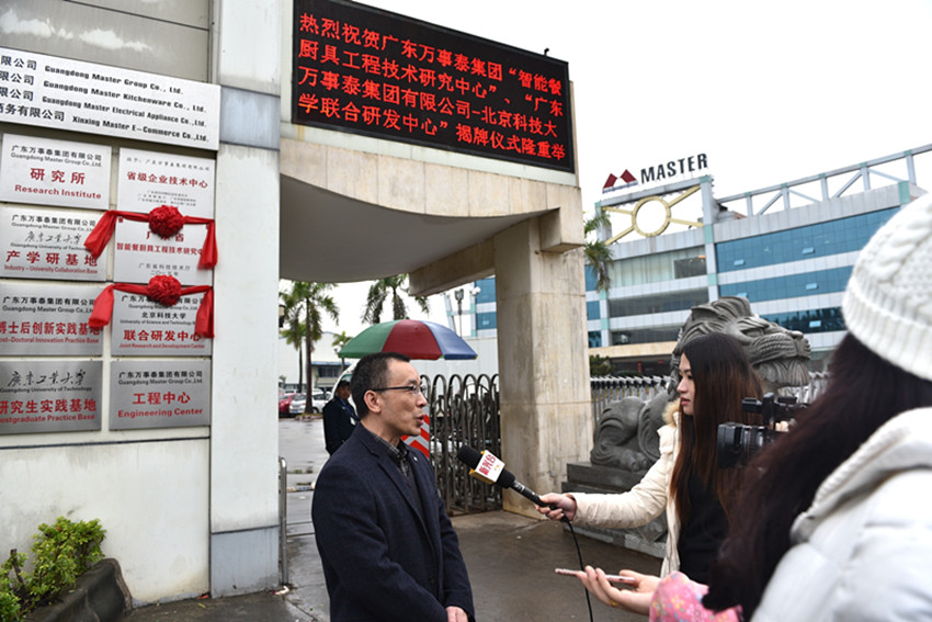 集團訊 2016年1月15日上午10時,廣東萬事泰集團隆重舉行省級“智能餐廚具技術(shù)工程研究中心”、“萬事泰集團與北京科技大學(xué)聯(lián)合研發(fā)中心”揭牌儀式。