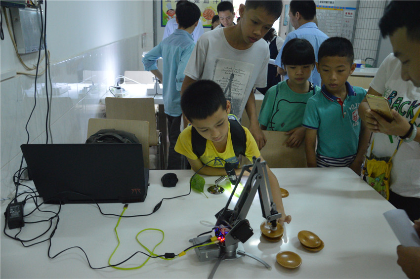講座上現(xiàn)場展示了集團先進儀器uArm機械臂、500倍電子顯微鏡、wifi智能開關(guān)遠(yuǎn)程操作家電設(shè)備等輕松趣味又貼近生活的小環(huán)節(jié),讓小朋友們可以通過先進的科學(xué)設(shè)備儀器和生活的有機結(jié)合,近距離感受科技改變生活的意義,培養(yǎng)科學(xué)創(chuàng)新的興趣,勇于思考、發(fā)問和表達,寓教于樂。