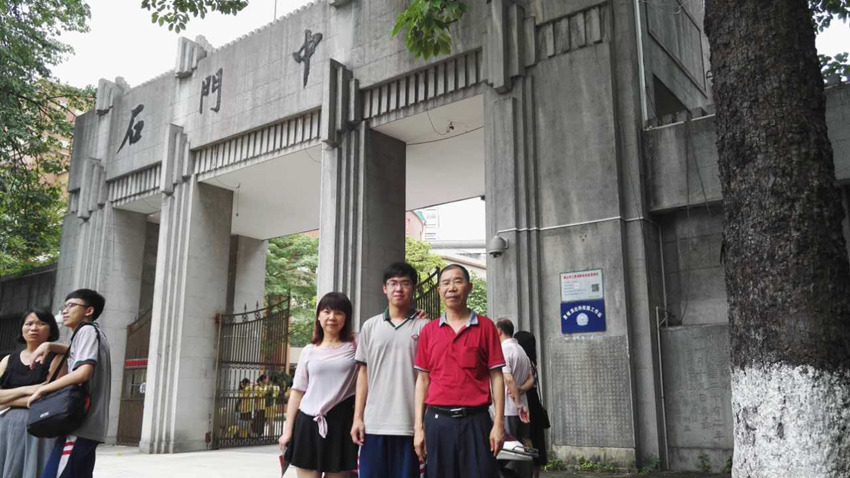 T:這次光銳能夠考到狀元,確實(shí)是感到非常驚喜。25號上午9點(diǎn)45分接到石門中學(xué)老師的報(bào)喜電話并約見光銳,后來光銳打電話和我說,北大的招生人員想約見一下我們,讓我們現(xiàn)在就去一趟學(xué)校。但是高考放榜時(shí)間是25號上午11點(diǎn),當(dāng)時(shí)心情有點(diǎn)遲疑,驚喜交集。在經(jīng)得公司的允許后,我立即回到家里接上光銳,一起出發(fā)到學(xué)校了解具體情況。在前往學(xué)校的途中,懷著半信半疑、又驚又喜的心情,因?yàn)槠綍r(shí)兒子的成績大多維持全校十幾名,這樣的意外之喜,難免使我內(nèi)心不能平靜。直到最后到達(dá)學(xué)校,見到校長和老師、記者已在等候著,那一刻我確信了,如稀重負(fù)的我,開心和激動(dòng)涌上心頭,這樣的喜悅簡直無法形容。