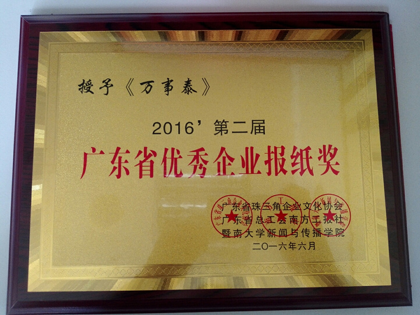 集團(tuán)訊 2016年7月4日,2016第二屆廣東省優(yōu)秀內(nèi)刊頒獎(jiǎng)活動(dòng)在暨南大學(xué)新聞與傳播學(xué)院隆重舉行。廣東萬事泰集團(tuán)月報(bào)《萬事泰》獲評“廣東省優(yōu)秀企業(yè)報(bào)紙獎(jiǎng)”,《萬事泰》主編鄭志成獲得廣東省優(yōu)秀企業(yè)報(bào)紙主編獎(jiǎng)。