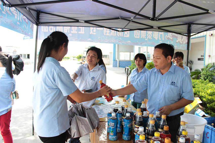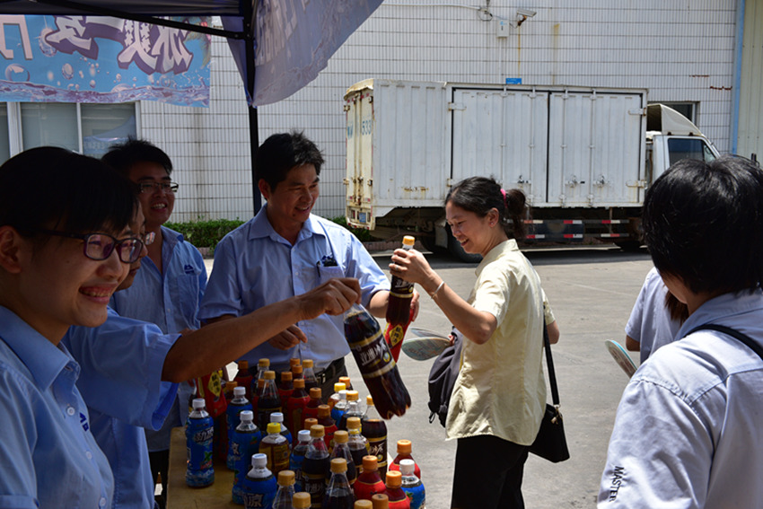 事業(yè)二部經(jīng)理為一線員工派發(fā)清涼飲料