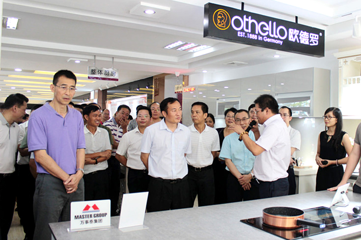 領(lǐng)導(dǎo)們參觀了萬事泰集團(tuán)自主研發(fā)的智能整體廚房