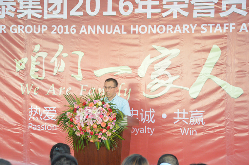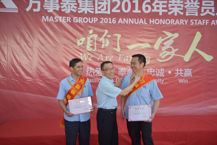 集團訊 2016年8月26日下午4時,為表彰與萬事泰集團風雨兼程、恪盡職守的老員工們的奉獻,傳承、發(fā)揚萬事泰“家”文化,集團舉行了主題為“咱們一家人”的2016年度的新晉榮譽員工頒獎典禮和答謝晚宴。