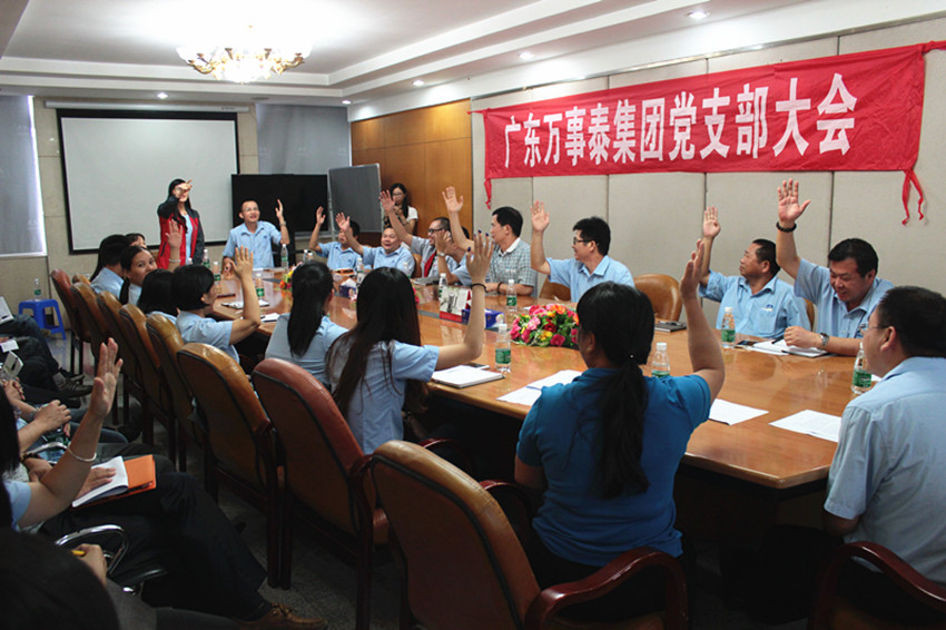 集團(tuán)訊 10月7日下午5時(shí)許,萬(wàn)事泰黨支部在集團(tuán)一樓會(huì)議室召開(kāi)廣東萬(wàn)事泰集團(tuán)黨支部大會(huì),集團(tuán)全體黨員參加了會(huì)議。會(huì)議由黨支部書(shū)記陳永錦和黨支部副書(shū)記、工會(huì)主席梁洪光共同主持。