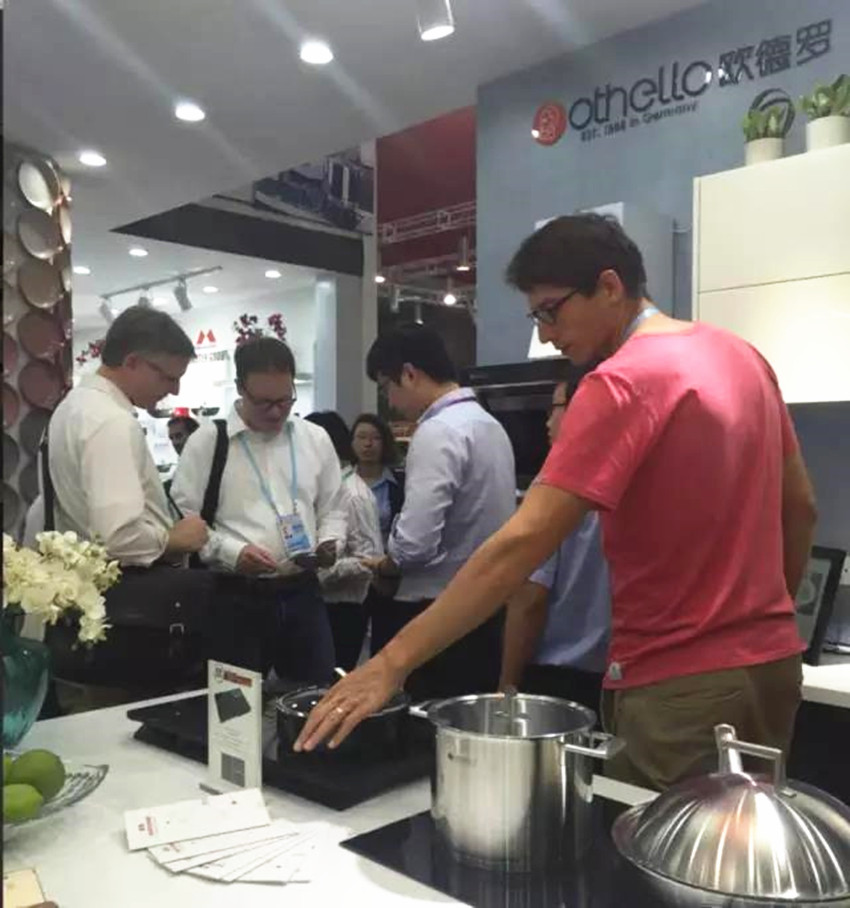 令人驚訝的是,該款鍋具的手柄已經(jīng)過15000次疲勞破壞測試,一個體重約100公斤的男士雙腳同時站在鍋具的兩只手柄上也完全不損壞其絲毫。就連一位來自中東地區(qū)的采購商也驚呆了,”這款鍋具的結(jié)實精美程度實在令我倍感驚訝,價格在高端廚具品牌中也有一定的優(yōu)勢,預(yù)計在我們國家會有不錯的市場前景。所以對我而言,Othello歐德羅是一個不錯的合作品牌,”