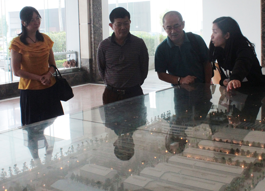 首先,講解員為調(diào)研組的領(lǐng)導(dǎo)們介紹了廠區(qū)全景沙盤(pán)模型、廠區(qū)規(guī)劃投資情況、產(chǎn)品業(yè)務(wù)及經(jīng)營(yíng)情況等。