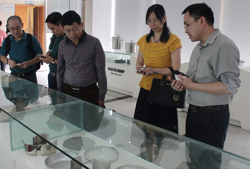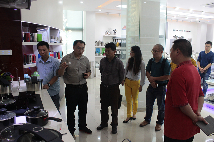 隨后調(diào)研組的領(lǐng)導(dǎo)們來(lái)到了萬(wàn)事泰智能廚房多功能展廳參觀,總裁辦助理歐劍華為調(diào)研組的領(lǐng)導(dǎo)們介紹了集團(tuán)公司不銹鋼產(chǎn)品、鋁制品的工藝特點(diǎn),以及萬(wàn)事泰自主研發(fā)的智能烹飪臺(tái)E-cook table和帶有溫度傳感器的不粘鍋,為調(diào)研組一行展示了萬(wàn)事泰科技創(chuàng)新轉(zhuǎn)型升級(jí)的新產(chǎn)品和新方向。