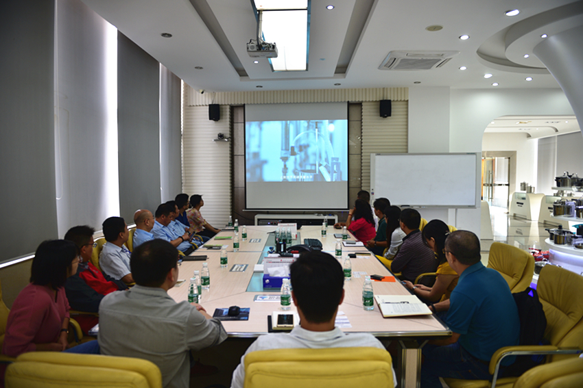 最后,在歐劍華的帶領(lǐng)下,調(diào)研組的領(lǐng)導(dǎo)們與集團(tuán)技術(shù)中心開(kāi)發(fā)人員、電器公司技術(shù)開(kāi)發(fā)人員紛紛入座四樓展廳會(huì)議室,一同觀看了萬(wàn)事泰集團(tuán)視頻介紹。