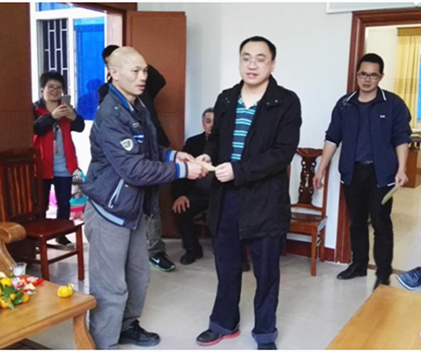 集團(tuán)總裁辦主任梁賢武給殘疾人送上慰問金