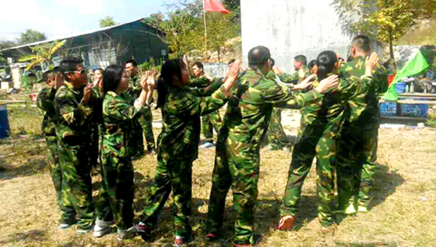 第三個項目是節(jié)拍同步。在指揮官的哨令下,我們整個隊伍圍成一個圓圈,并開始有節(jié)奏的打節(jié)拍和喊口號:從1開始有節(jié)奏地重復拍打左右員工肩膊到8,并喊出我們的口號,“我們是最棒的團隊”,一次,兩次…經(jīng)過多次的配合,口號聲越來越整齊、節(jié)拍越快速,最紿達到了訓練的要求。該項目的培訓目的是培養(yǎng)員工步調(diào)一致,配合默契的團隊精神。這個項目看似簡單易做,其實是考驗我們思想集中,團結(jié)一致、步調(diào)一致、作風嚴謹?shù)木駹顟B(tài)