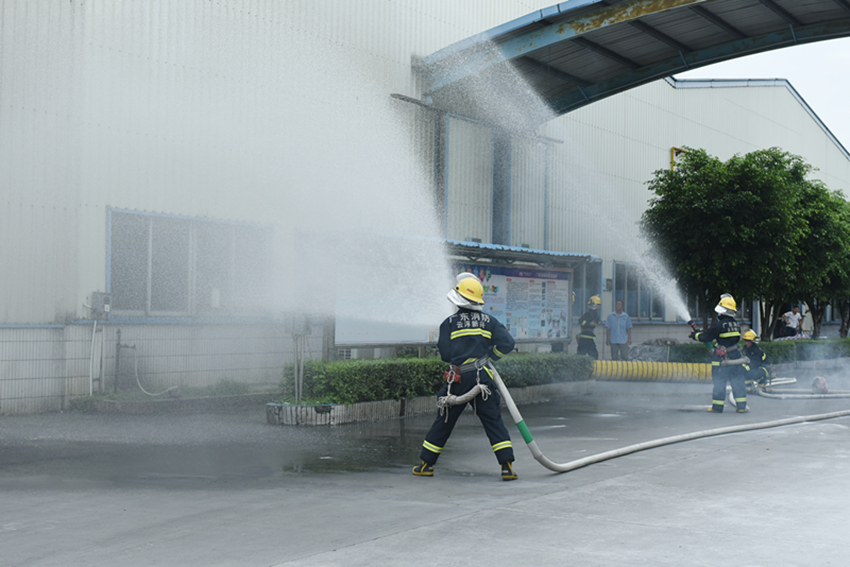 在演習(xí)的過程中,新興縣消防官兵針對(duì)火災(zāi)事故發(fā)生時(shí)的情況講解了各種滅火器材的性能、用途和使用方法,并實(shí)操演習(xí)了車間現(xiàn)場(chǎng)火災(zāi)撲救。隨后,全廠員工在疏散組的指揮下井然有序地按照規(guī)定疏散路線,迅速撤離了現(xiàn)場(chǎng),到達(dá)指定地點(diǎn)。