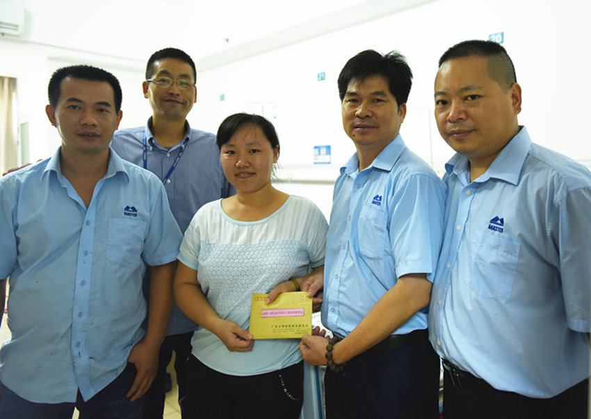 集團(tuán)領(lǐng)導(dǎo)得知消息后,第一時間給莫洪利家人進(jìn)行了電話慰問,次日,公司領(lǐng)導(dǎo)代表總裁辦主任梁賢武、人力資源部經(jīng)理梁愛偉、工會主席梁洪光帶著萬事泰集團(tuán)的關(guān)懷來到云浮市人民醫(yī)院,看望慰問患病的莫洪利。公司領(lǐng)導(dǎo)們詳細(xì)了解了莫洪利目前的生活和治療情況,并鼓勵他樹立信心,以良好的精神狀態(tài)與困難、疾病作斗爭,爭取早日回歸萬事泰大家庭。