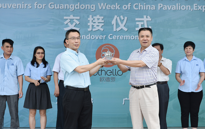 ▲othello歐德羅“2017阿斯塔納世博會中國館廣東活動周專用紀(jì)念品”交接儀式