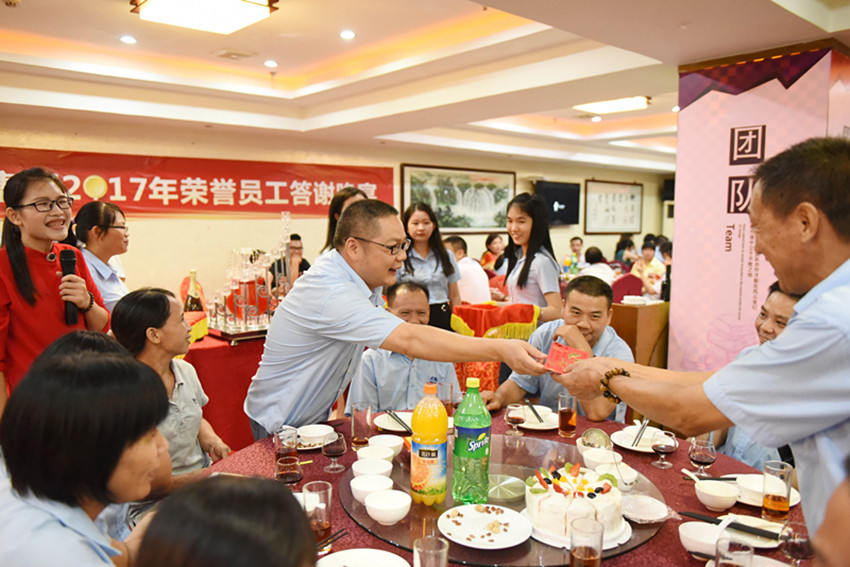 頒獎(jiǎng)典禮上,集團(tuán)常務(wù)副總裁劉炳耀致辭道:“我代表集團(tuán)對(duì)今天獲獎(jiǎng)的老員工表示熱烈的祝賀和衷心的感謝!感謝你們多年來(lái)為公司所付出的辛勤汗水,感謝大家為公司發(fā)展所做的每一份貢獻(xiàn)!同時(shí)也希望各位老員工們一如既往,繼續(xù)支持公司的發(fā)展,做好員工表率,發(fā)揮“傳、幫、帶”的作用,為公司發(fā)展做出更大的貢獻(xiàn)。集團(tuán)也將繼續(xù)秉持“共創(chuàng)、共贏、共享”的理念,與大家風(fēng)雨同舟,攜手同行!”