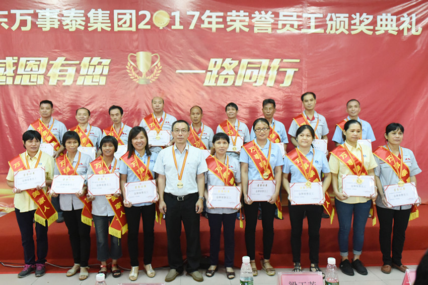 集團(tuán)訊 秋風(fēng)送爽,金桂飄香。2017年8月25日,為回報(bào)員工的長(zhǎng)情陪伴和辛勤工作,增強(qiáng)企業(yè)的凝聚力,萬(wàn)事泰隆重舉辦了一年一度榮譽(yù)員工頒獎(jiǎng)典禮暨答謝晚宴。集團(tuán)常務(wù)副總裁劉炳耀出席并致辭。