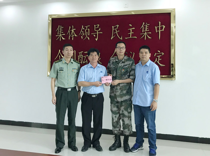由萬事泰集團工會主席梁洪光帶隊的慰問小組一行走進了縣武裝部,為廣大武裝官兵們送上節(jié)日問候和慰問金??h武裝部陳部長熱情接待,并向萬事集團對縣武裝部的支持表示真誠的感謝。