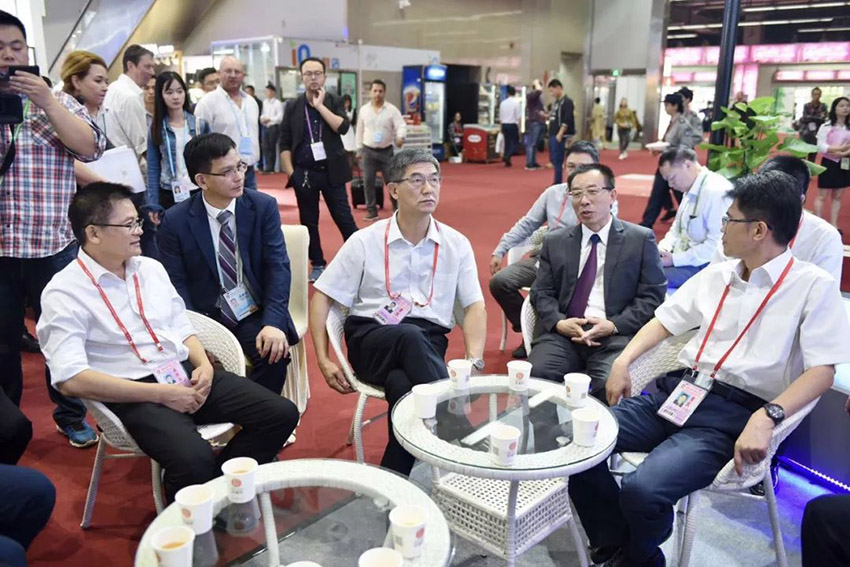 劉總代表新興縣不銹鋼商會與萬事泰集團向調(diào)研領導分別作了工作匯報,詳細介紹了企業(yè)發(fā)展情況、應對中美貿(mào)易摩擦的措施和本屆廣交會參展情況。