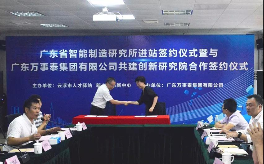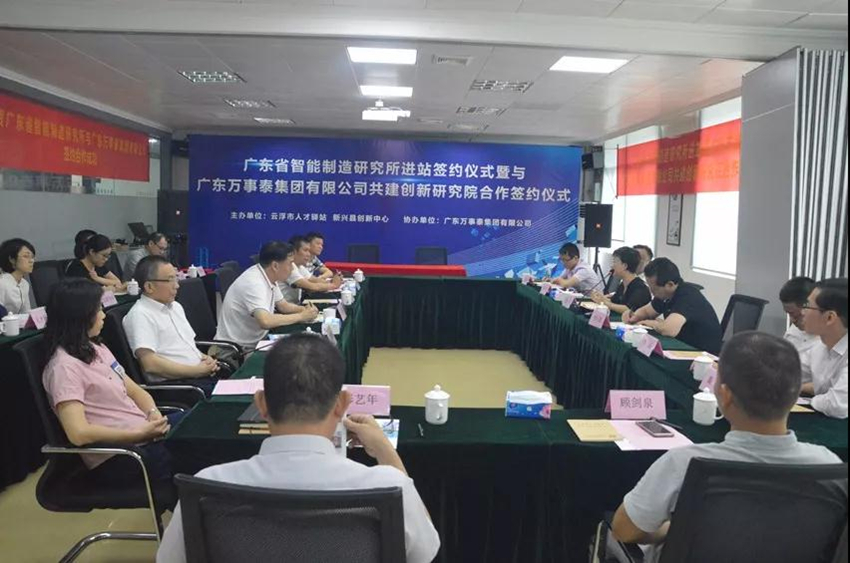 5月23日上午,由云浮市人才驛站和新興縣創(chuàng)新中心主辦,廣東萬事泰集團(tuán)協(xié)辦的“廣東省智能制造研究所進(jìn)站簽約儀式暨廣東萬事泰集團(tuán)有限公司共建創(chuàng)新研究院合作簽約儀式”在新興縣創(chuàng)新中心隆重舉行。