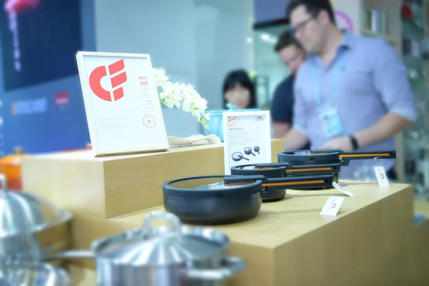 本屆展會,萬事泰集團攜數(shù)百款高端產(chǎn)品亮相,系列創(chuàng)新研發(fā)產(chǎn)品大放異彩,吸引眾多客商青睞。其中,最值得驕傲的是:萬事泰創(chuàng)新產(chǎn)品再次榮登廣交會CF獎舞臺,樂廚系列鍋具斬獲2019年廣交會CF獎金獎。