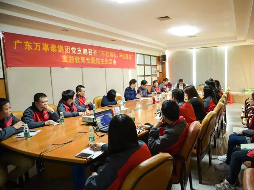 萬事泰黨支部按照縣委主題教育的統(tǒng)一部署召開了“不忘初心、牢記使命”主題教育專題民主生活會。黨支部委員、各科室黨員參加了會議。會議由黨支部書記陳永錦主持。