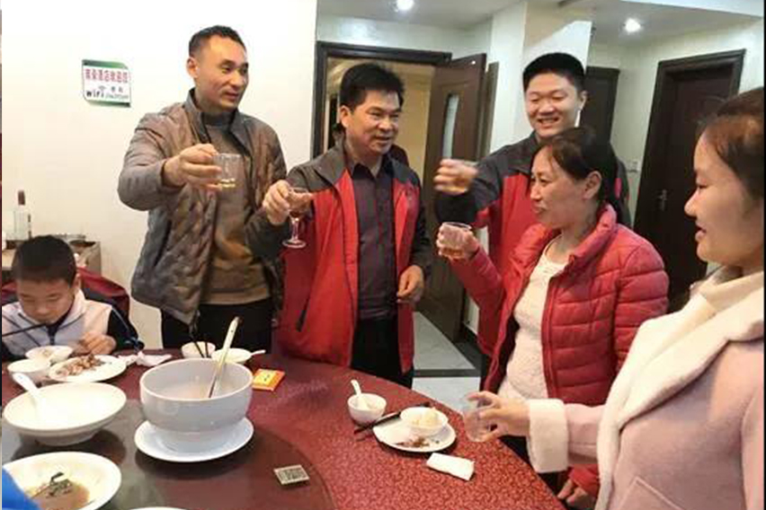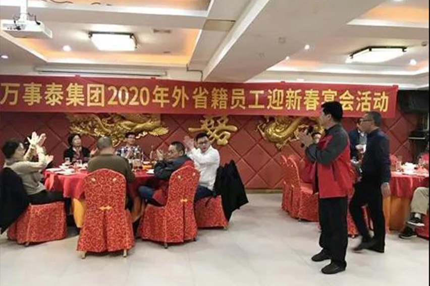 晚宴上,工會主席梁洪光代表集團公司作了講話,并向全體外來員工致以節(jié)日的問候和深深的祝福。他說:“在新春佳節(jié)來臨之際,希望大家把萬事泰當作是自己的家,安安心心、高高興興在萬事泰過大年。”他還提到,“過去的一年有大家的努力,集團在困境中能突破困難,迎難以上,取得了好成績,集團非常感謝你們!”