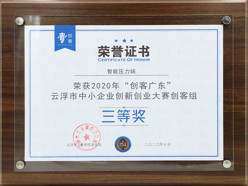 集團訊 近日,由云浮市工業(yè)和信息化局主辦,新興縣人民政府、新興縣創(chuàng)新中心承辦的2020年“創(chuàng)客廣東”云浮市中小企業(yè)創(chuàng)新創(chuàng)業(yè)大賽頒獎儀式暨創(chuàng)客巔峰會在云浮市新興縣隆重舉行。經(jīng)過激烈的角逐,廣東萬事泰集團有限公司的“智能壓力鍋”項目榮獲創(chuàng)客組三等獎。
