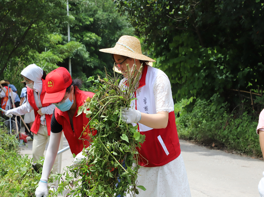 掃把、垃圾鏟、鐵鏟、鋤頭,這些簡(jiǎn)單的清掃工具是萬(wàn)事泰“美容師”最得力的助手,雜草、紙屑皆是他們的“眼中釘”。他們頂著高溫,無(wú)懼臟累,對(duì)轄區(qū)內(nèi)的垃圾、雜物展開(kāi)集中清理。在烈日下,他們熱情高漲,使勁揮著手里的鋤頭,豆大的汗滴流過(guò)臉龐,濕透了衣裳,過(guò)路的行人紛紛投來(lái)敬佩的眼神。他們用自己的雙手為附近居民創(chuàng)造了一個(gè)干凈整潔的生活環(huán)境,營(yíng)造了良好的社會(huì)風(fēng)氣。