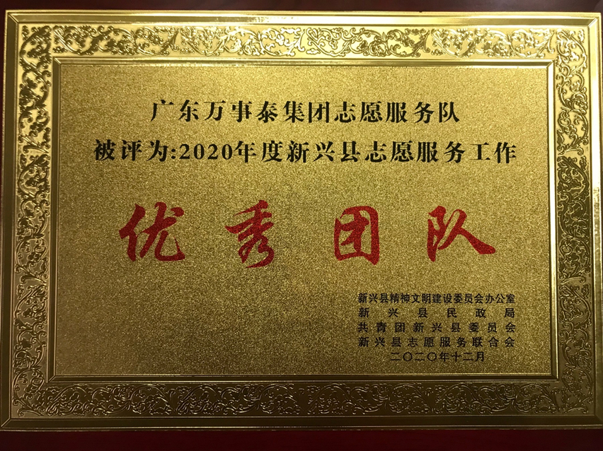 廣東萬事泰集團有限公司志愿服務(wù)隊能獲此獎,大大激勵著志愿者的斗志和信心,獲得優(yōu)秀團隊來之不易,是在全縣一百多支志愿服務(wù)隊伍中評選出來的。