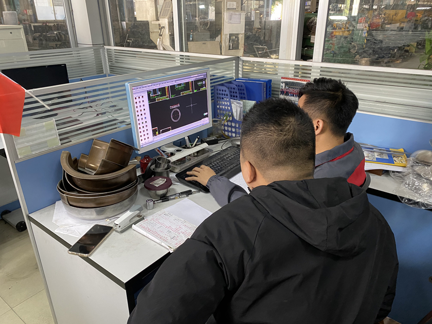 經(jīng)過(guò)工程部辦公室,傳來(lái)一陣教學(xué)的聲音:“模型這里分開(kāi)標(biāo)數(shù),這些數(shù)據(jù)代表......”走進(jìn)一看,是一對(duì)師徒正在描繪著圖紙,交流著CAD操作技術(shù)。師傅陳偉強(qiáng)用高標(biāo)準(zhǔn)、嚴(yán)要求的原則教導(dǎo)徒弟,言傳身教地帶領(lǐng)徒弟在萬(wàn)事泰一步步前進(jìn)。
