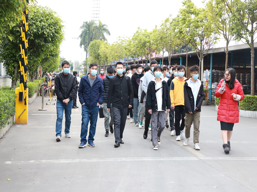 學(xué)校領(lǐng)導(dǎo)及學(xué)生一行先后參觀了自動化生產(chǎn)線、品檢中心、員工宿舍及飯?zhí)?,詳?xì)了解了萬事泰生產(chǎn)經(jīng)營、產(chǎn)品質(zhì)量管控及員工生活區(qū)情況。