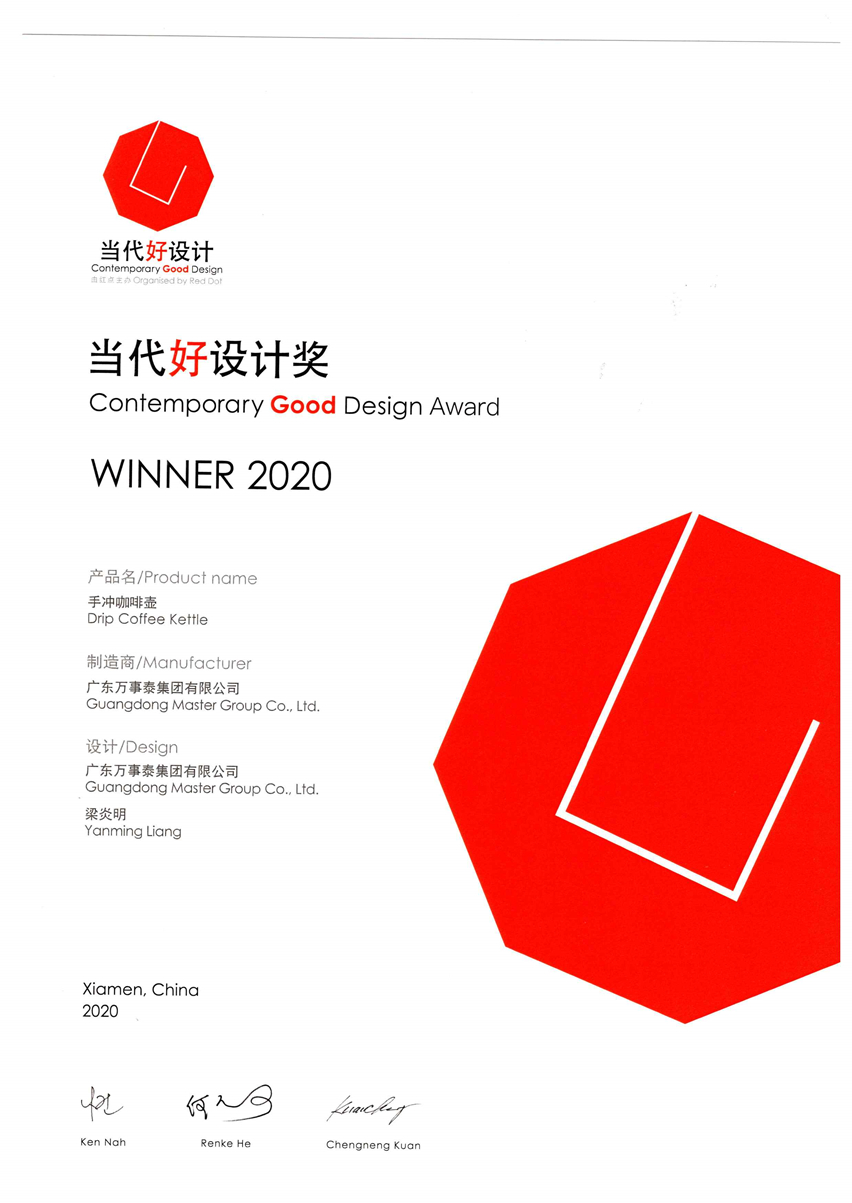 近日,2020年當代好設計獎評選結果揭曉,萬事泰集團水平系列鍋具、手沖咖啡壺因卓越的創(chuàng)新設計同時榮獲“2020年當代好設計獎”。此次脫穎而出的萬事泰兩大產品被授予榮譽,是對萬事泰集團杰出的設計成就最大的肯定。
