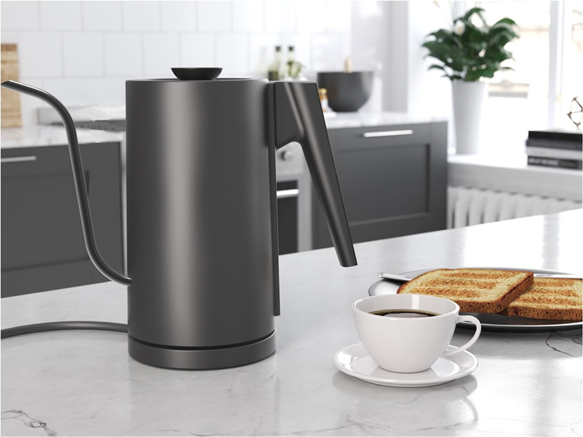同獲殊榮的手沖咖啡壺新穎獨特、色彩多樣,流暢的線條感設計搭配亞光外色更顯典雅,如高雅端莊的“貴婦”?!笆譀_咖啡壺+智能煮水壺”的一體化設計,智能化的精準控溫與保溫,讓咖啡粉能更均勻地接受同一種溫度的萃取。從功能、材質與整體設計上不斷突破和創(chuàng)新的手沖咖啡壺,不僅節(jié)約沖泡咖啡的時間,還讓咖啡品質更有保證。