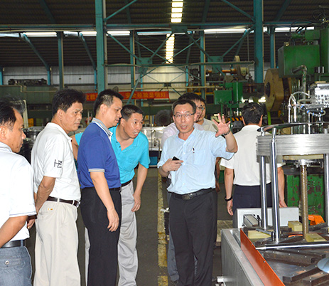 萬事泰集團(tuán)常務(wù)副總裁劉炳耀等集團(tuán)領(lǐng)導(dǎo)陪同驗收專家組一行先后來到技術(shù)中心、沖壓車間、產(chǎn)品檢測中心以及成品展示室考察創(chuàng)新能力平臺建設(shè)情況,劉副總裁在一旁為專家組成員詳細(xì)介紹萬事泰的建設(shè)成果。