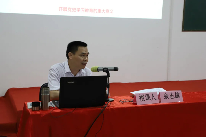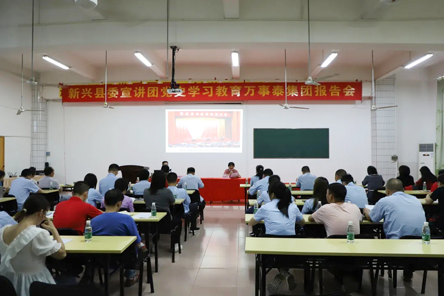 集團(tuán)訊 為貫徹落實(shí)黨史學(xué)習(xí)教育的部署要求,激勵(lì)和動(dòng)員全體黨員干部職工更加緊密團(tuán)結(jié),聚力加快探索建設(shè)融灣發(fā)展先行示范縣。5月15日,集團(tuán)黨支部特邀縣委宣講團(tuán)講師余志雄同志蒞臨萬(wàn)事泰集團(tuán)宣講黨史學(xué)習(xí)教育,集團(tuán)黨支部全體黨員、工會(huì)委員、工委委員共50余人參加宣講學(xué)習(xí)教育活動(dòng)。