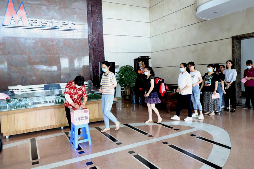 萬事泰集團(tuán)領(lǐng)導(dǎo)獲悉此事后,萬事泰集團(tuán)工會(huì)迅速發(fā)出捐款倡議書,發(fā)動(dòng)集團(tuán)員工為廖*強(qiáng)捐款,倡議書發(fā)出后,車間里員工們紛紛積極參與捐款,從5月22日到29日止,據(jù)不完全統(tǒng)計(jì),集團(tuán)員工用不同的方式為廖*強(qiáng)同事捐得善款約30000元,有1000多名員工參加了捐款行動(dòng),近日還有員工陸續(xù)捐款。