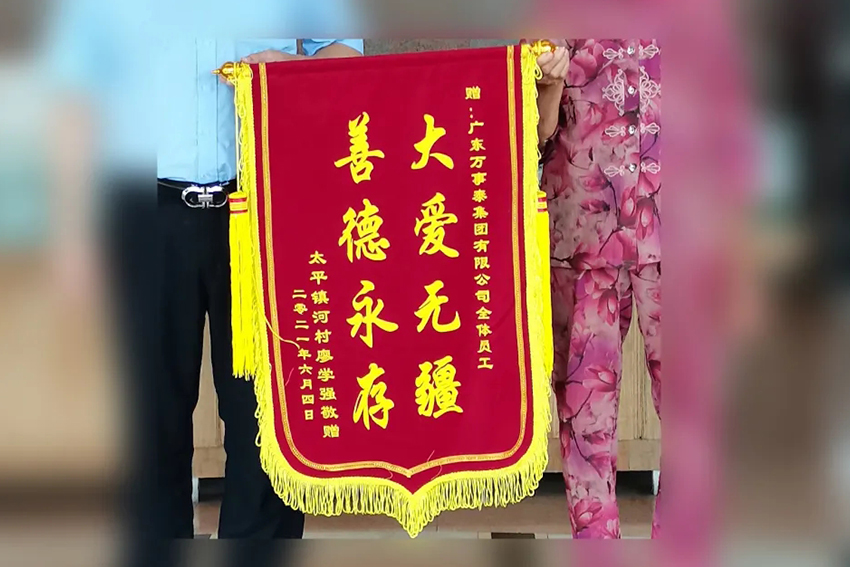 當(dāng)集團(tuán)黨支部書記、工會(huì)主席梁洪光把愛心捐款送到廖*強(qiáng)母親的手上時(shí),老人家感動(dòng)得說不出話,并向梁主席表示深深的感謝:萬事泰的員工很有善心,肯出力幫助我們,我們?nèi)冶硎救f分感謝,謝謝大家,也祝大家身體健康,工作順利,公司生意興隆。