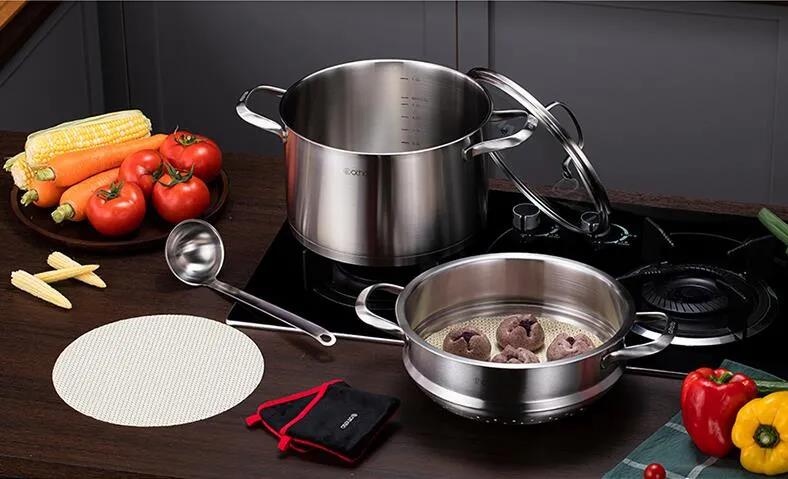 嚴(yán)選18/10不銹鋼原材,健康無(wú)涂層,耐氧化抗腐蝕,經(jīng)久耐用。加大水位刻度清晰,方便掌握水量。拉絲拋光工藝,耐污易潔。蒸煮同時(shí)進(jìn)行,一鍋多用不串味滿足一家使用。受熱更均勻,多爐灶通用 。