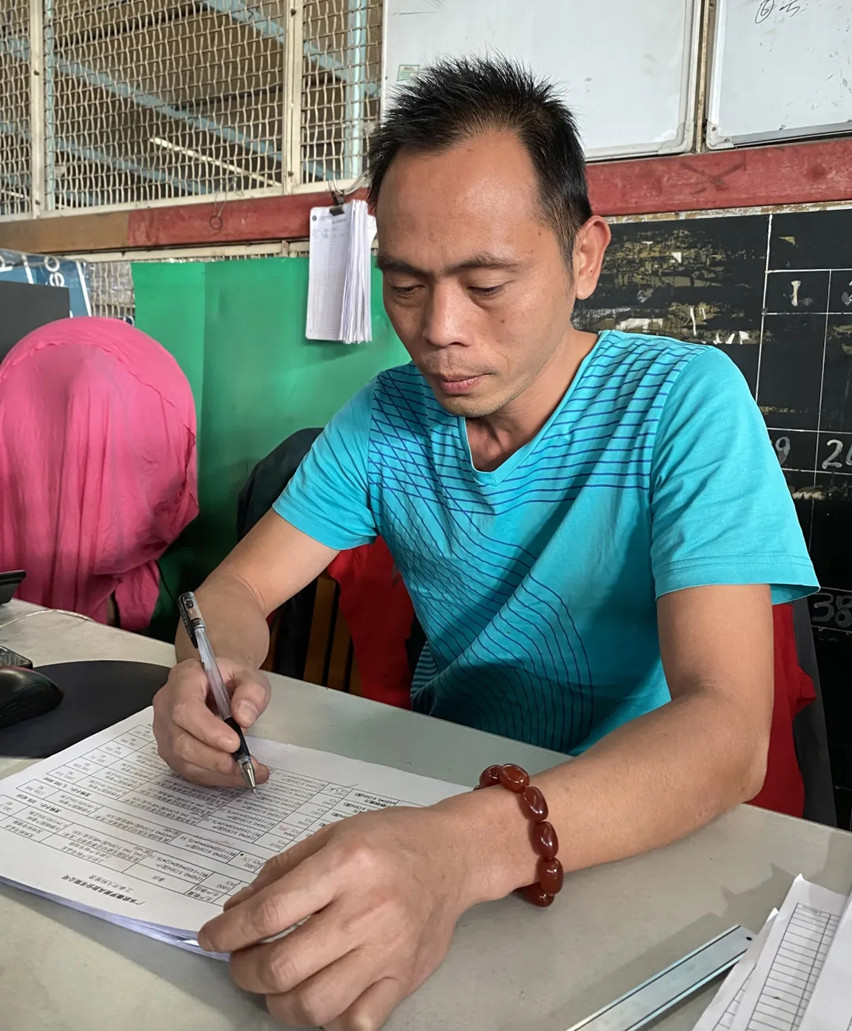 在廠區(qū)里,我們看見梁志彬叉車來回忙碌的身影。他每天的工作任務就是從早上7點半開始搬運、取貨、卸貨。梁志彬與其他司機一樣重復著這樣的工作模式和任務日復一日,年復一年??稍诹褐颈虻难劾锟吹降膮s是他奮斗的收獲,以及生活的充實美好。他堅信“幸福是奮斗出來的!”