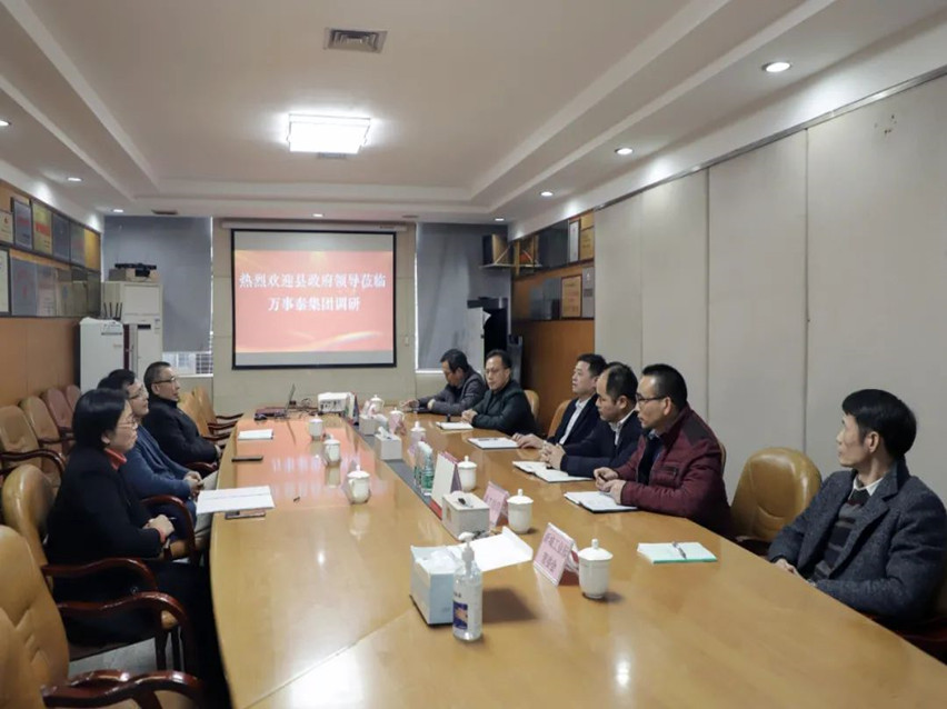 集團訊 2022年2月10日下午,由新興縣委副書記、縣長陳哲江,縣委常委、常務(wù)副縣長曾廣偉帶隊,縣供電局、新成工業(yè)園管委會、工信局、商務(wù)局組成的縣委縣政府新春走企業(yè)一行蒞臨廣東萬事泰集團調(diào)研。萬事泰集團董事長梁桂泉、執(zhí)行副總裁劉炳耀陪同接待。