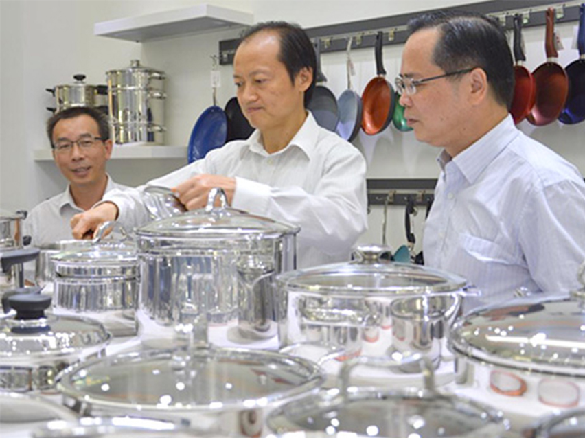 夏司長一行在劉副總裁的引領(lǐng)下參觀了集團總部四樓產(chǎn)品展示中心。劉副總裁給夏司長一行詳細介紹了萬事泰產(chǎn)品工藝制造及銷售情況。夏司長對萬事泰的產(chǎn)品表現(xiàn)出了濃厚的興趣。