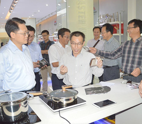 胡副市長(zhǎng)先后參觀了產(chǎn)品檢測(cè)中心和產(chǎn)品展示大廳,并且對(duì)集團(tuán)在116屆廣交會(huì)亮相的智能廚具二代進(jìn)行深入了解。在觀看了工作人員對(duì)智能廚具二代的演示后,胡副市長(zhǎng)提出了對(duì)產(chǎn)品的開發(fā)建議,并鼓勵(lì)萬事泰集團(tuán)再接再厲,完善產(chǎn)品,使其盡早投入市場(chǎng)。