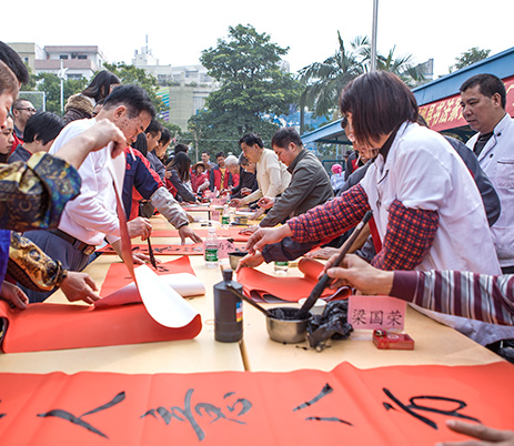 元月27日,由集團(tuán)組織的“新興縣書法家協(xié)會(huì)” 志愿者開展下企業(yè)送春聯(lián)活動(dòng)在廣東萬(wàn)事泰集團(tuán)公司籃球場(chǎng)舉行。來(lái)自我縣的書法家十名志愿者現(xiàn)場(chǎng)即席揮毫為集團(tuán)了員工送了來(lái)春聯(lián)。